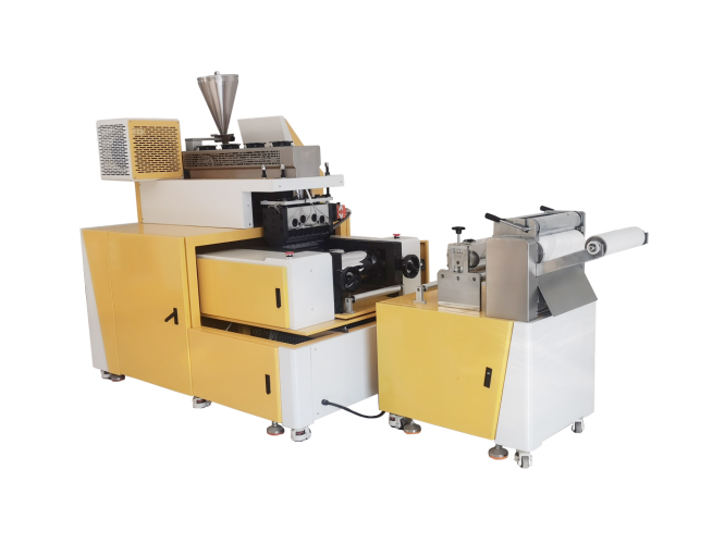 采用擠出機將熱塑性塑料熔融后,通過T型模具形成均勻熔體流延至冷卻輥表面,經(jīng)冷卻定型后收卷成型